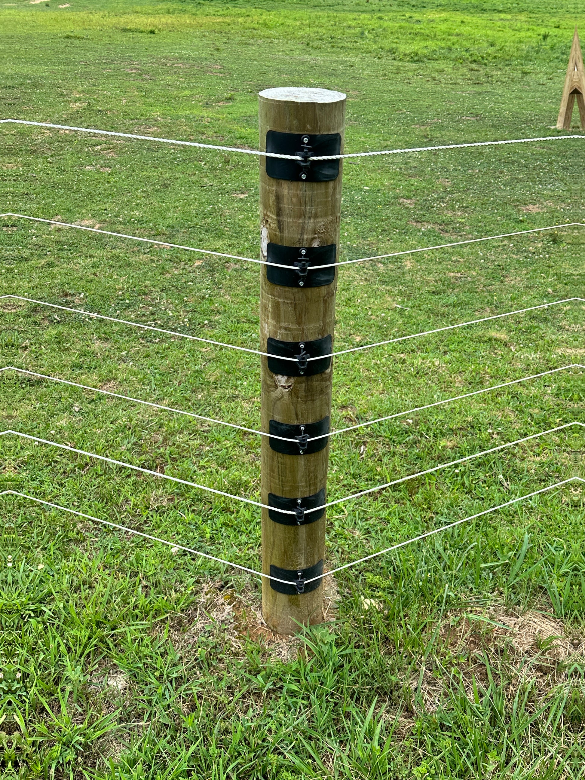 The Cameo Corner Collar is designed to be used on a round wood post up to 6” in diameter. However, you can use it on larger round diameter and square posts with the use of additional collars. These corner collars can also be used with large-diameter rope, braid, or coated wire.